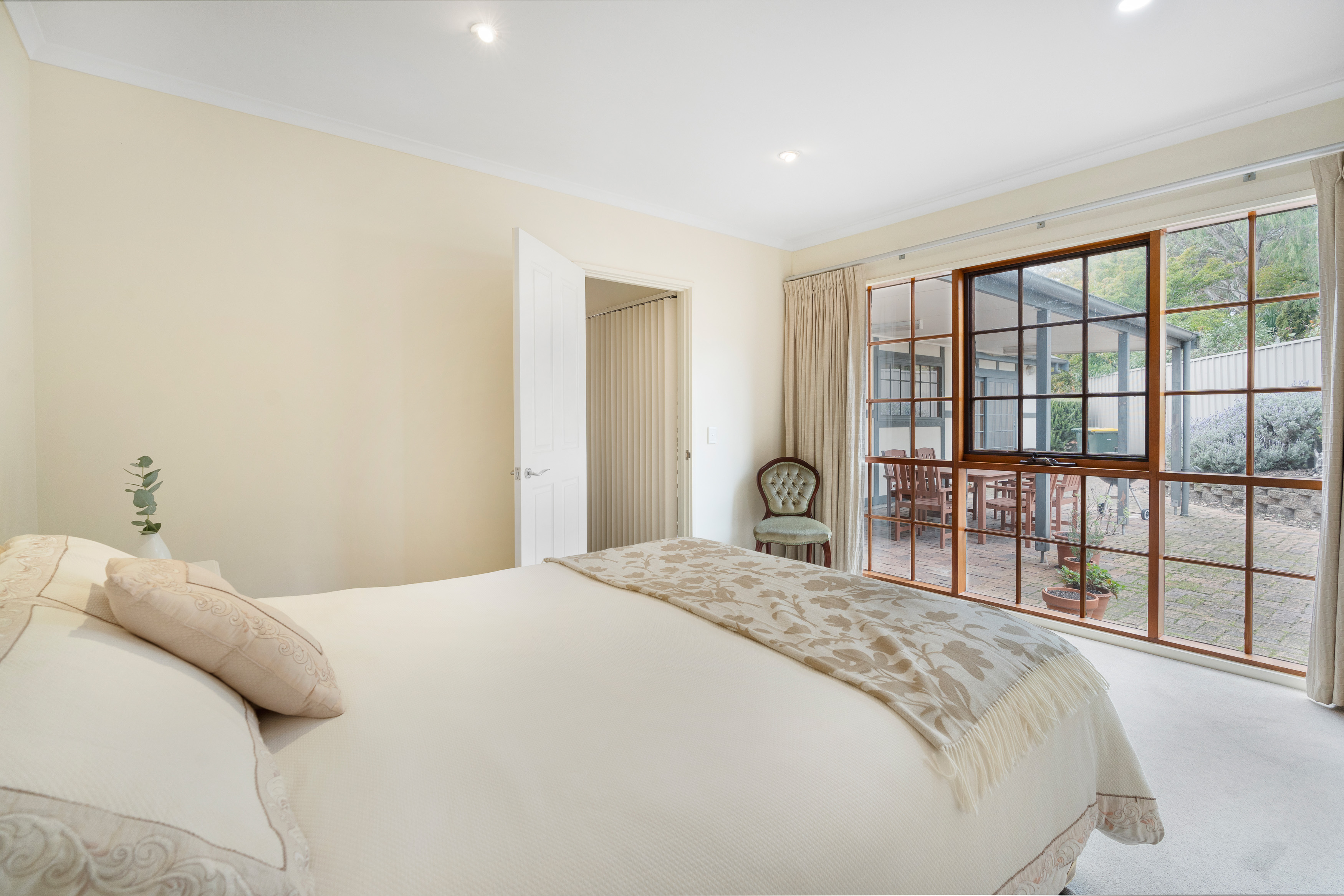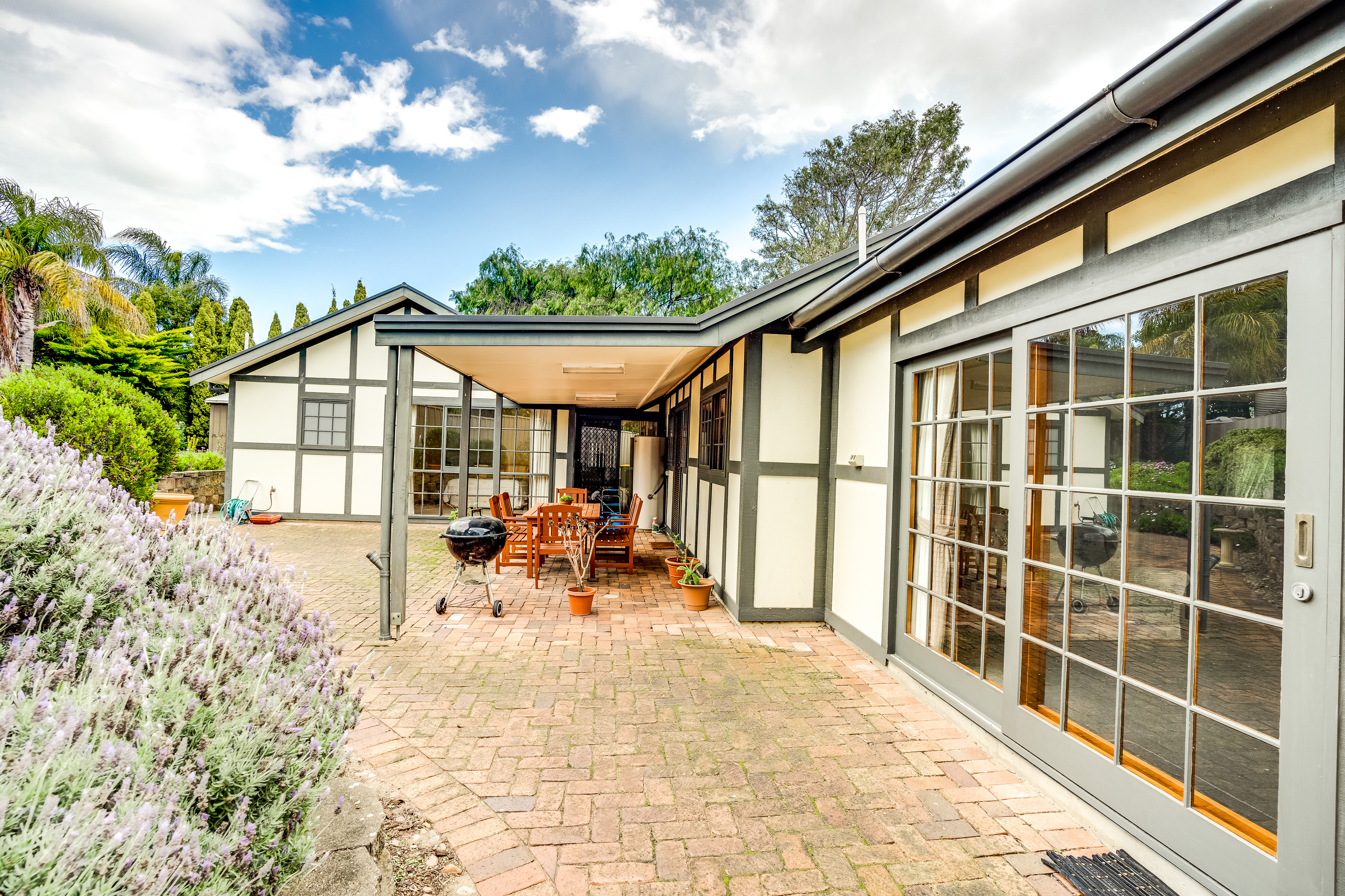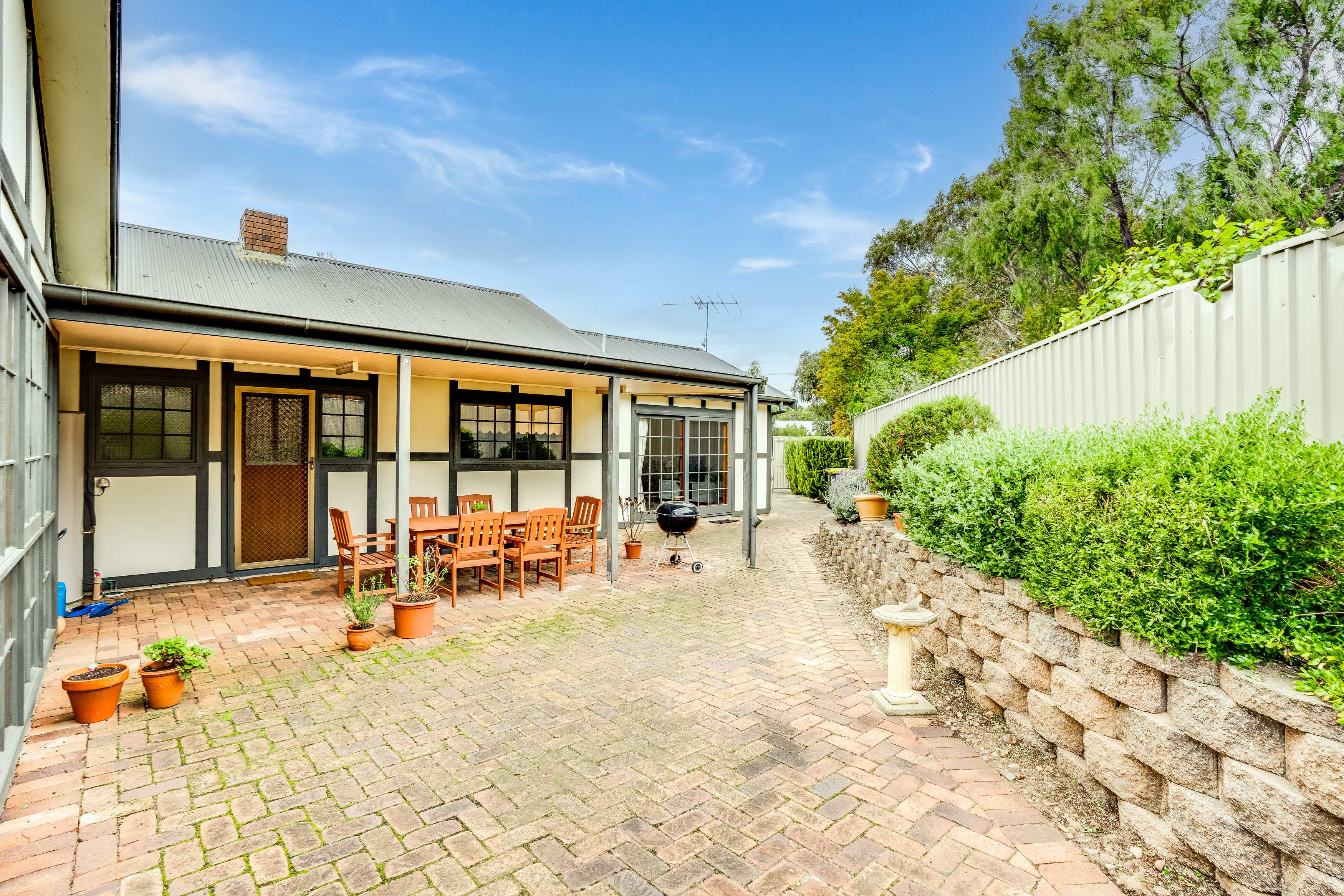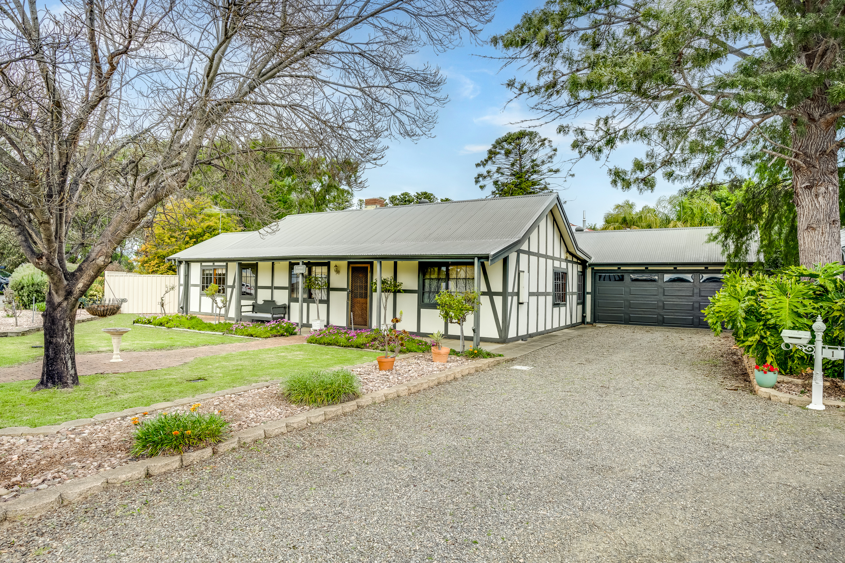 Immaculately presented both inside and out. Cottage gardens greet you, while a front verandah invites you to soak up the north-facing sunshine. Step into the spacious open-plan living, dining and kitchen area - featuring slate floors, exposed timber beams and a brick mantle with combustion fire. Enjoy year-round comfort with split-system air conditioning and ceiling fans. Built-in shelving and storage cupboards add practicality, while timber windows frame lovely views of the front yard.