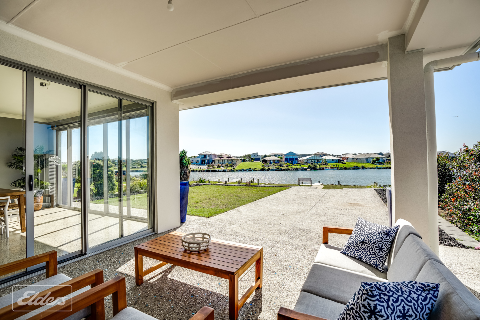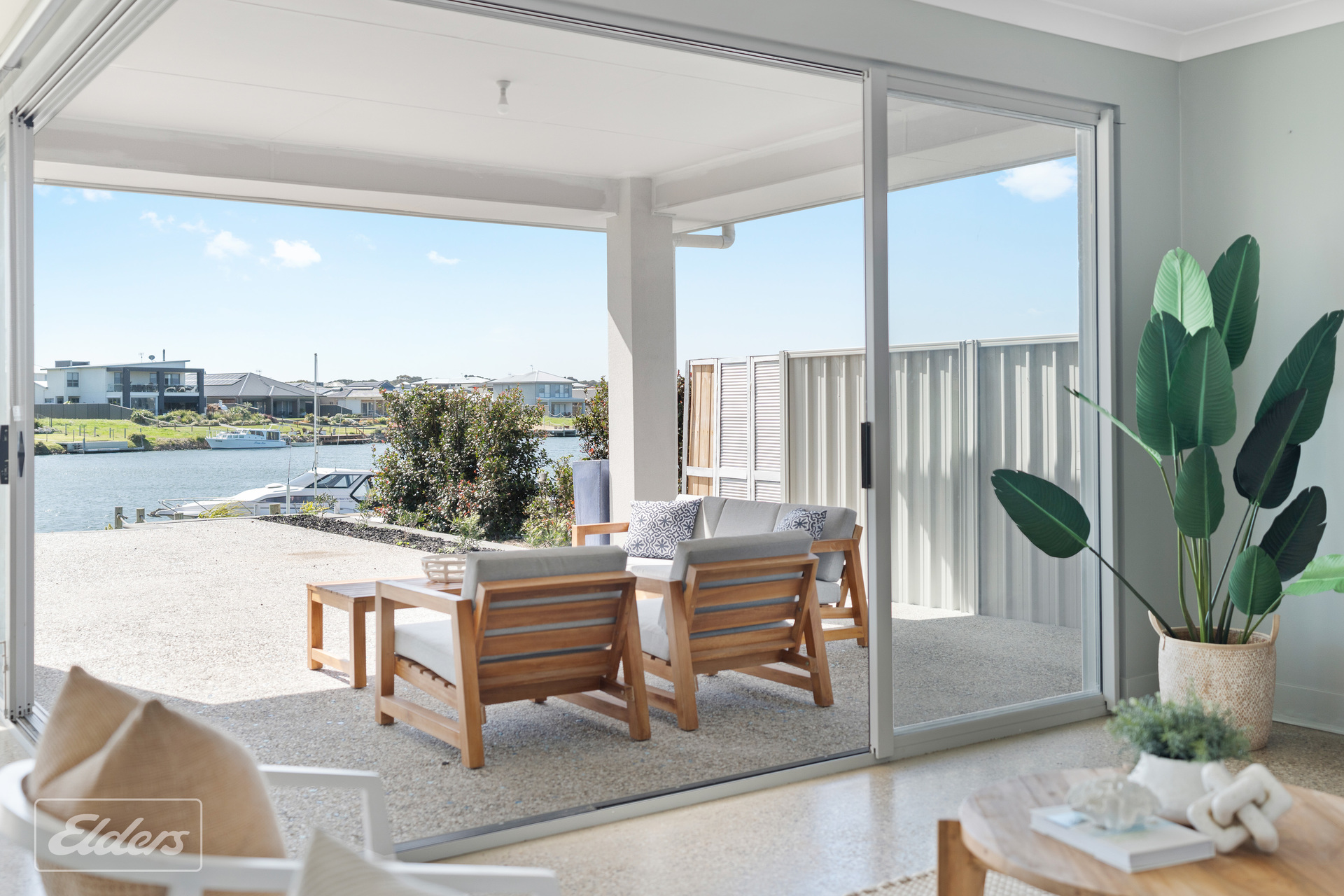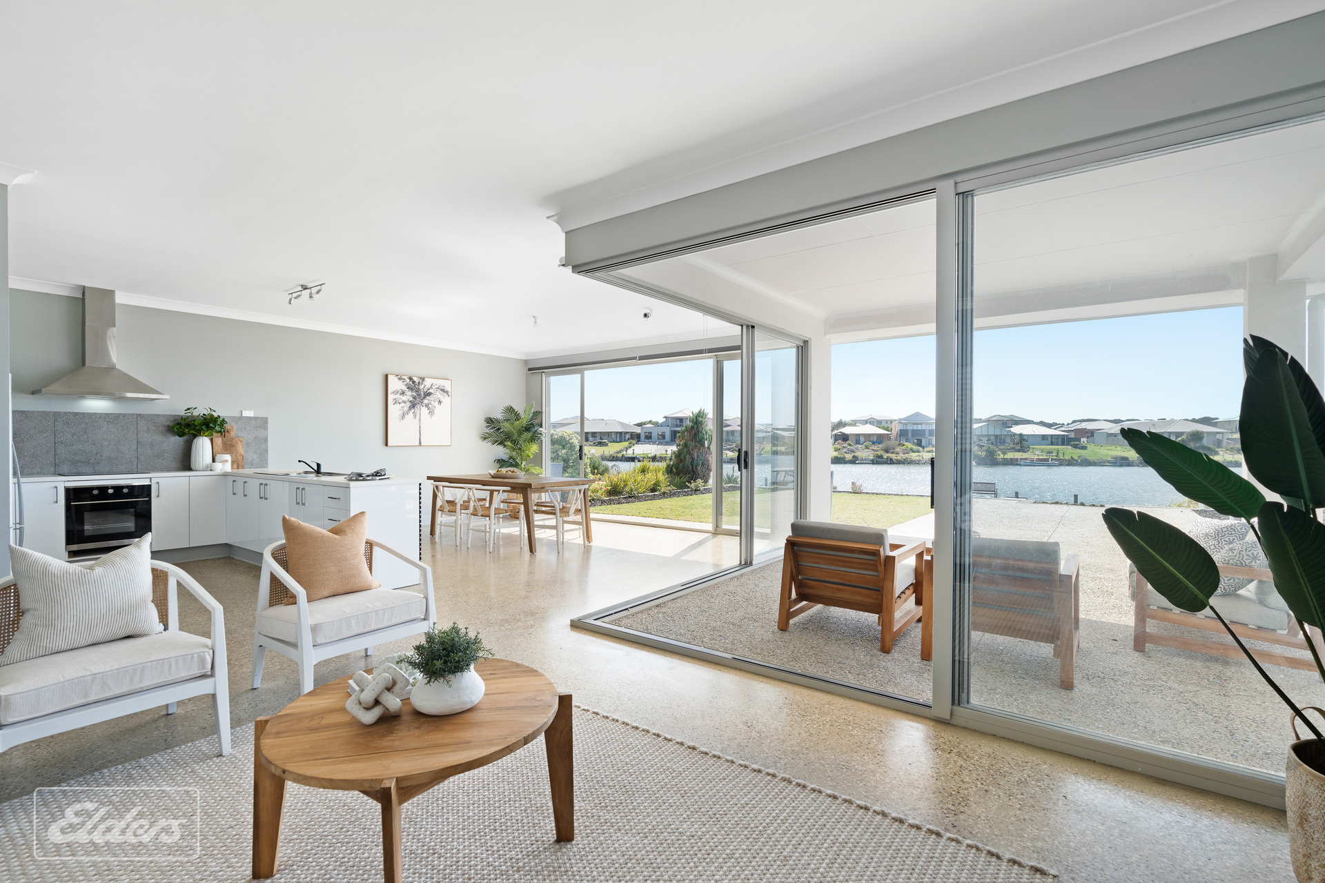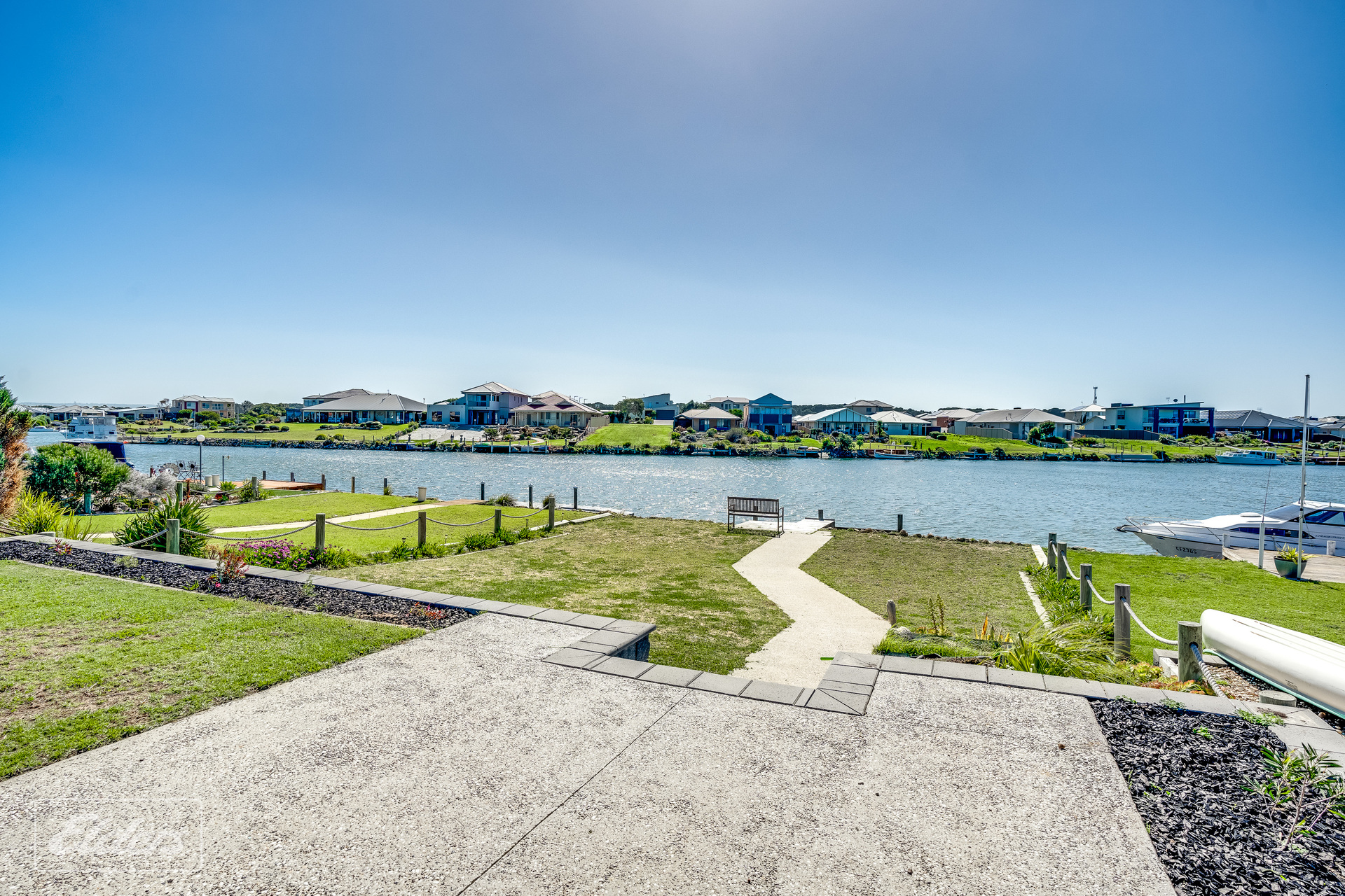 FEATURES: North facing water front block Polished concrete floors throughout All paths washed aggregate Carport 8-meters x 7 meters Extensive off-street parking