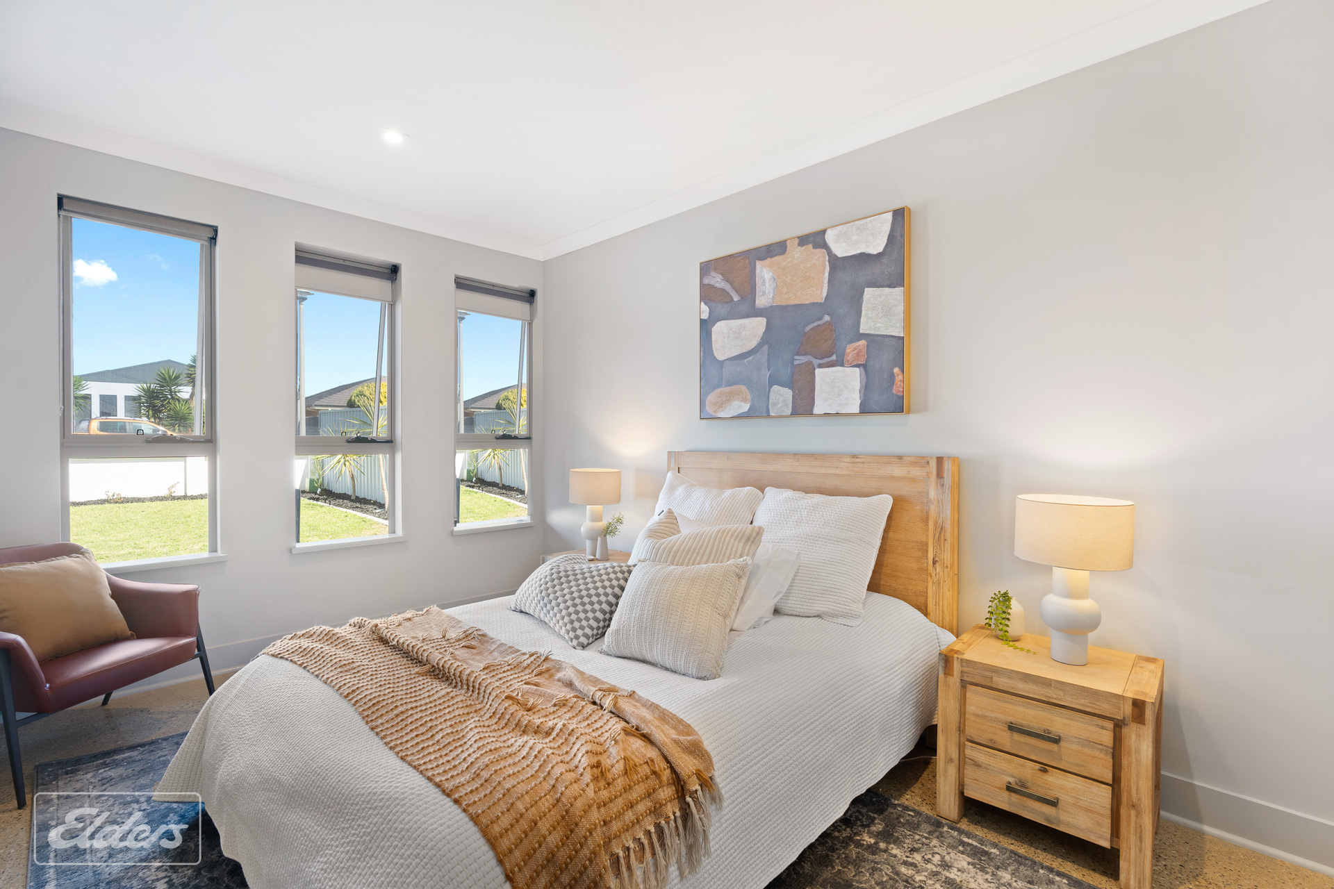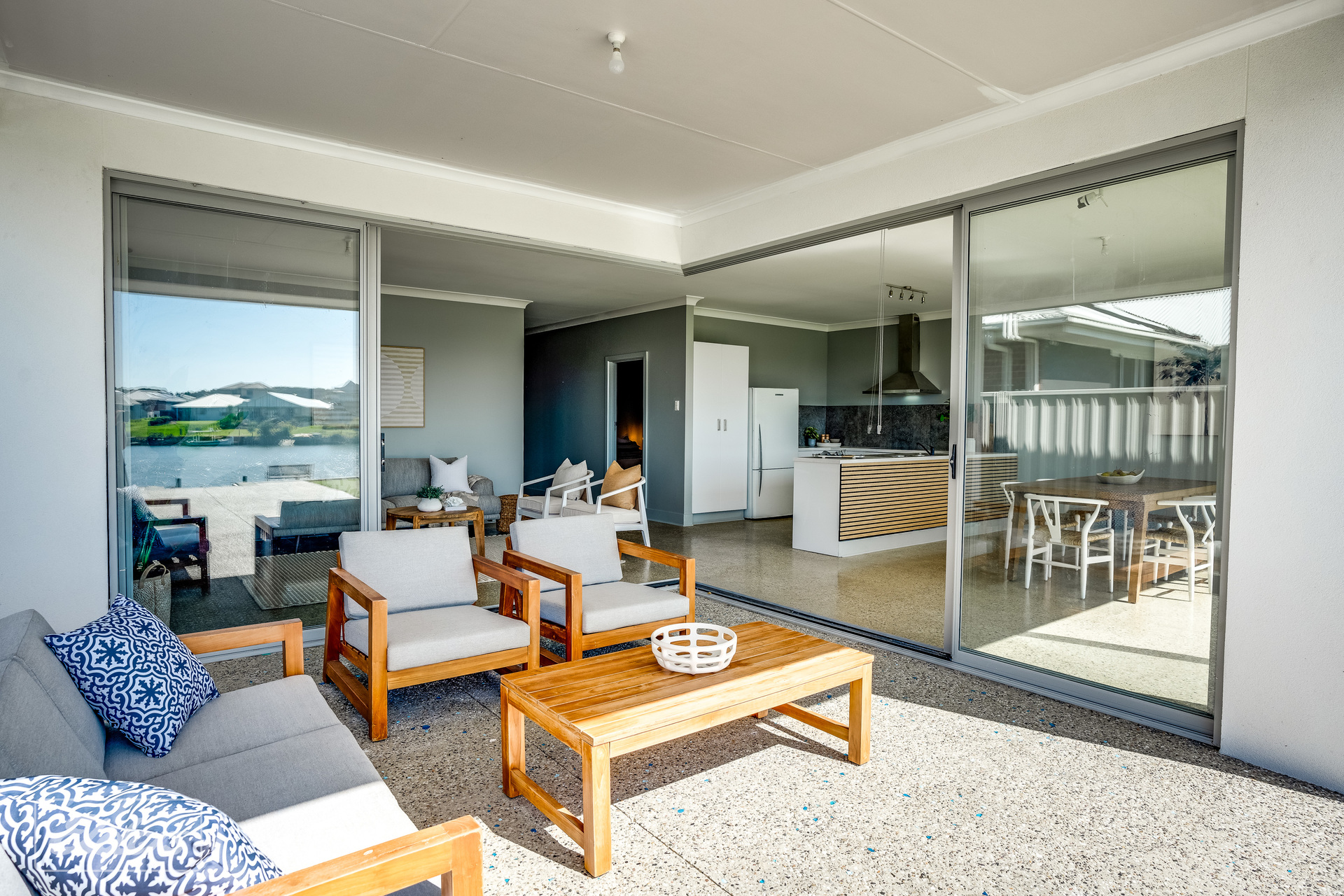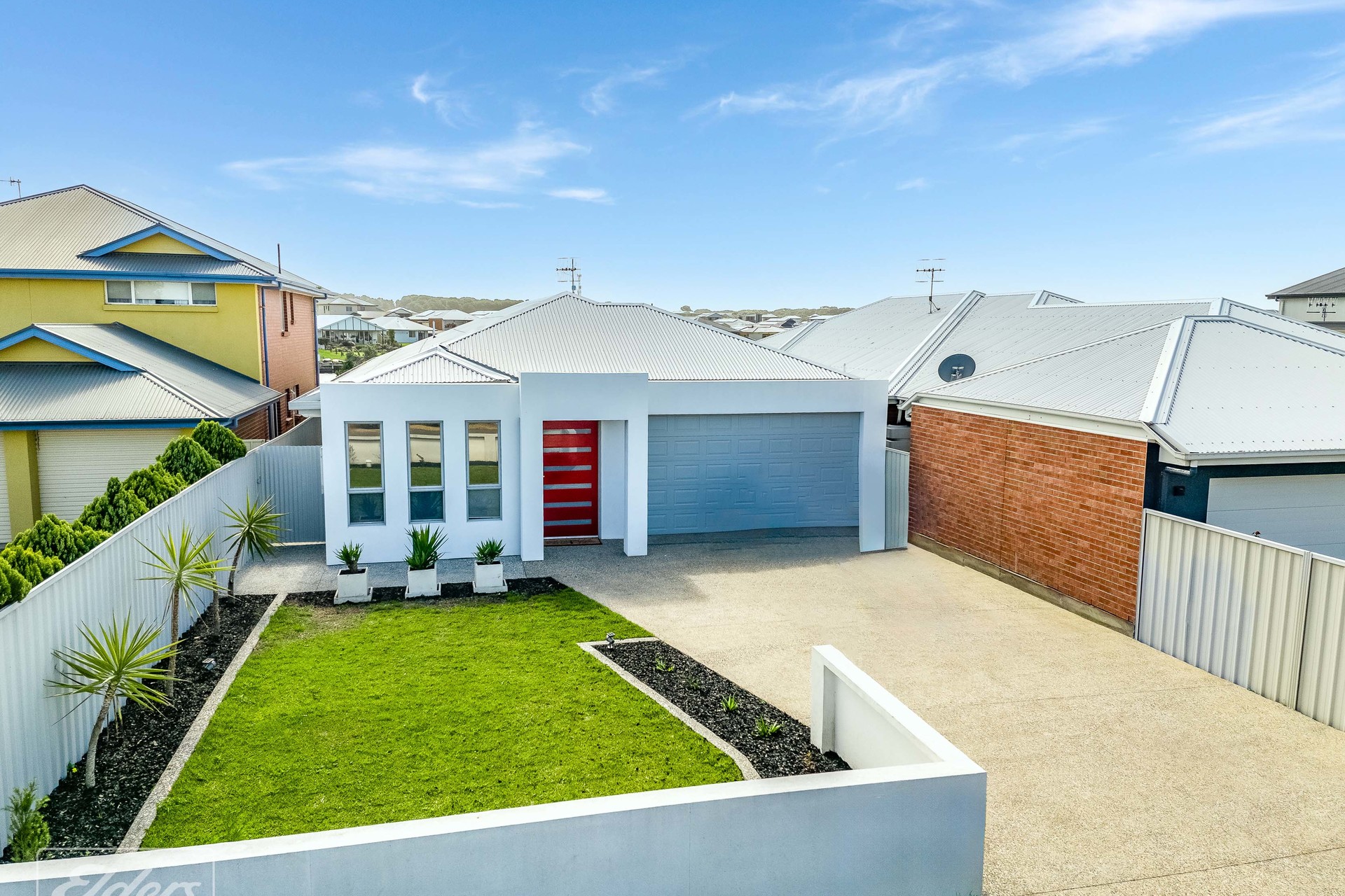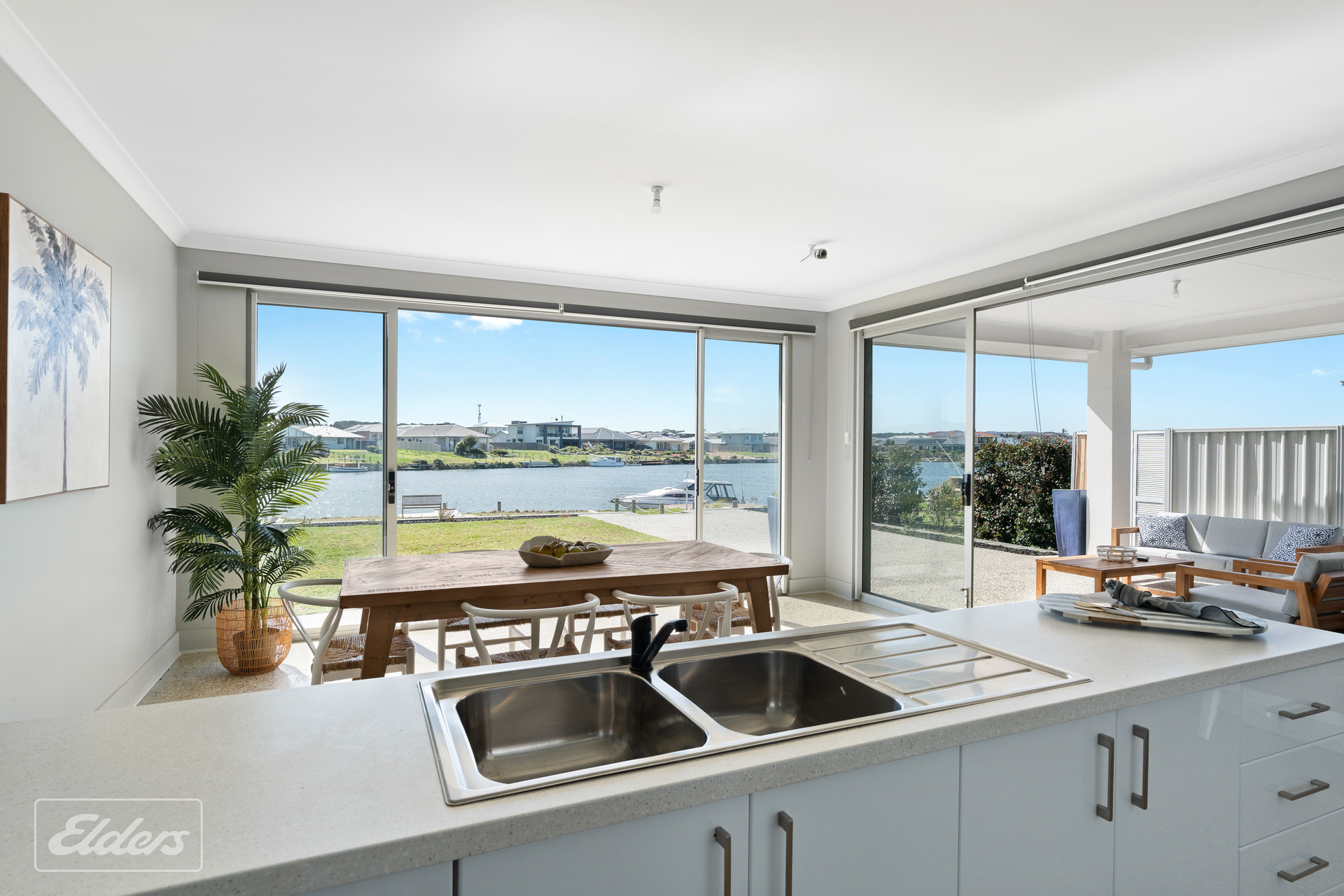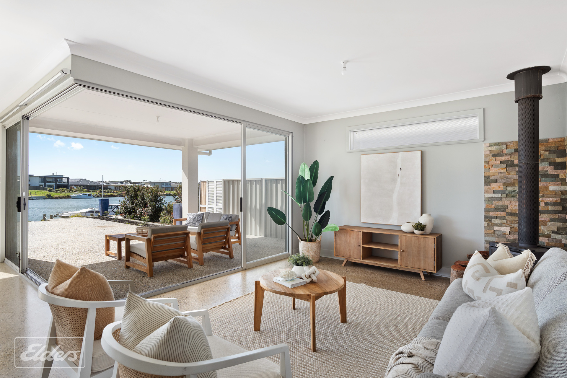 FEATURES: North facing water front block Polished concrete floors throughout All paths washed aggregate Carport 8-meters x 7 meters Extensive off-street parking