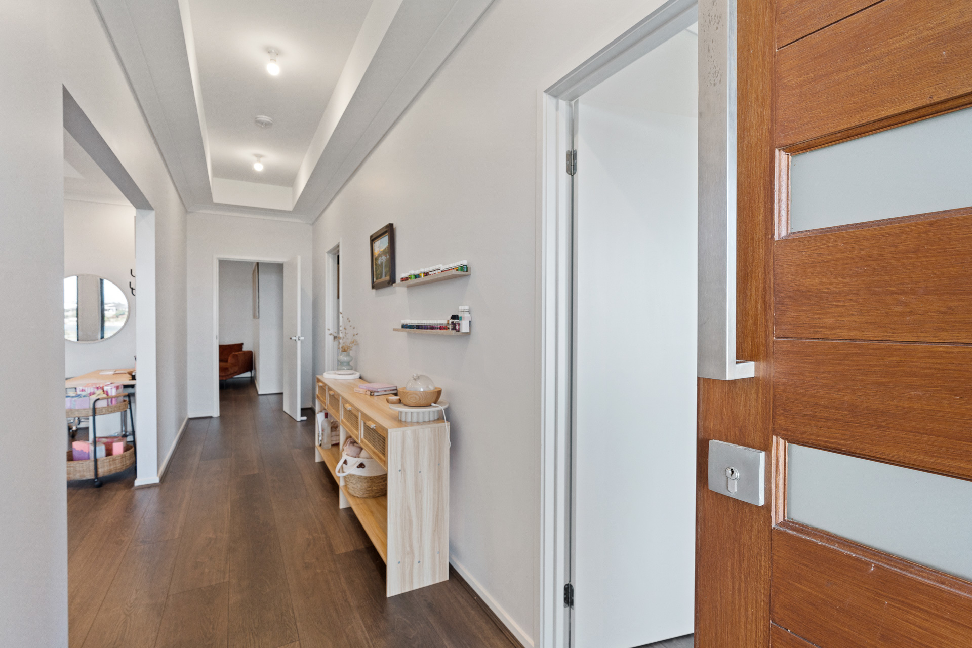 Extra-wide driveway & secure double garaging Park frontage, water glimpses & a rural backdrop A free-flowing open plan footprint Separate 2nd living room / studio (currently utilised as a hair salon)