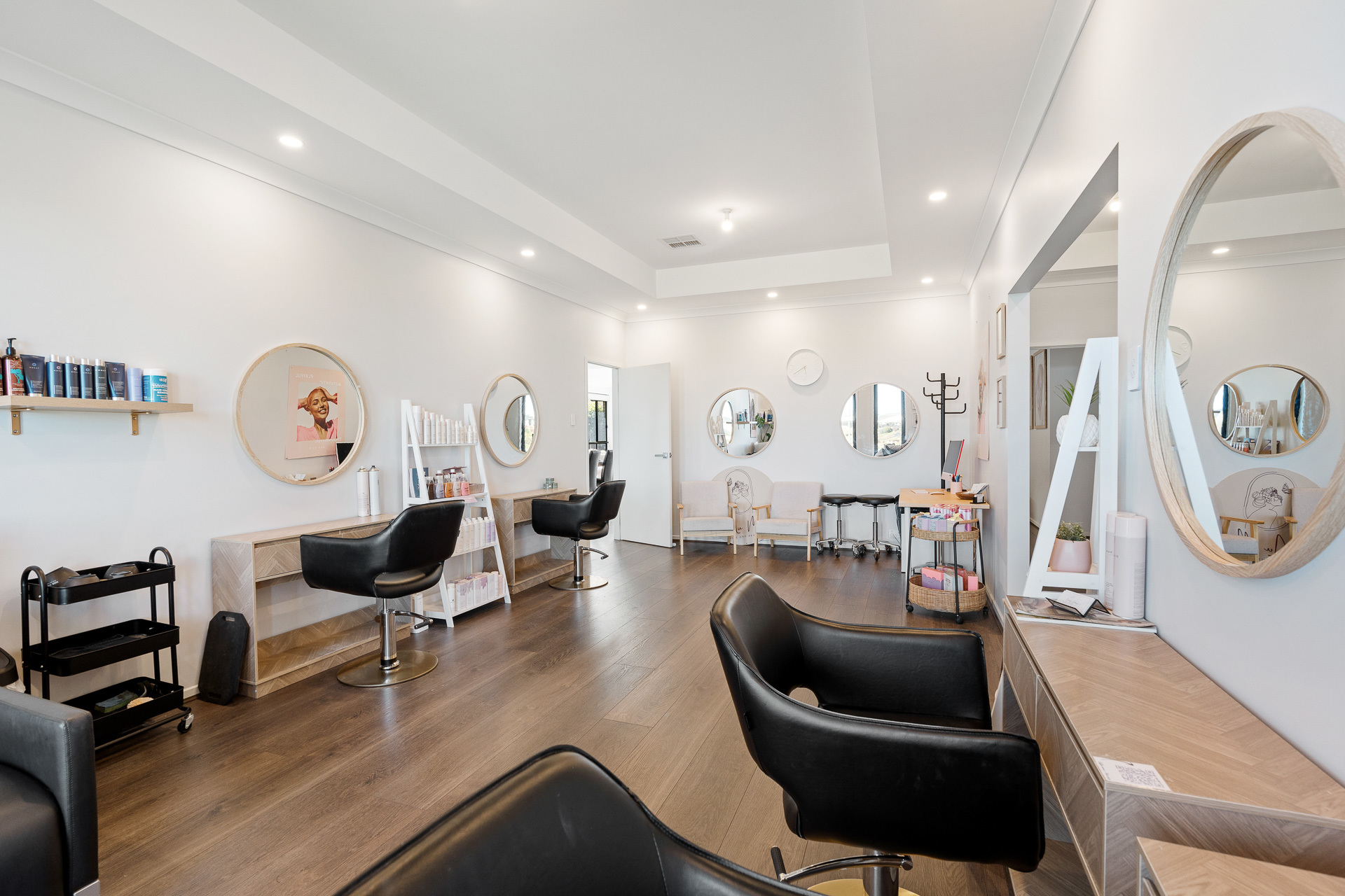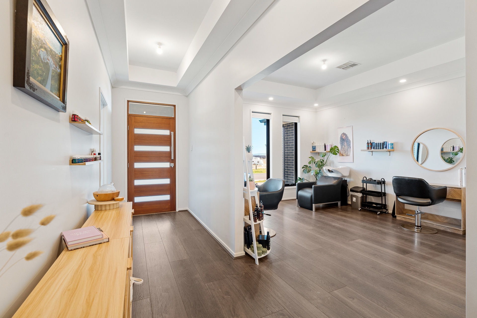 And who doesn't love living to dining room connection creating seamless flow and infinite layout options? The leading lounge/studio is currently an at-home salon, which also means the sky is the limit for versatility and possibility.