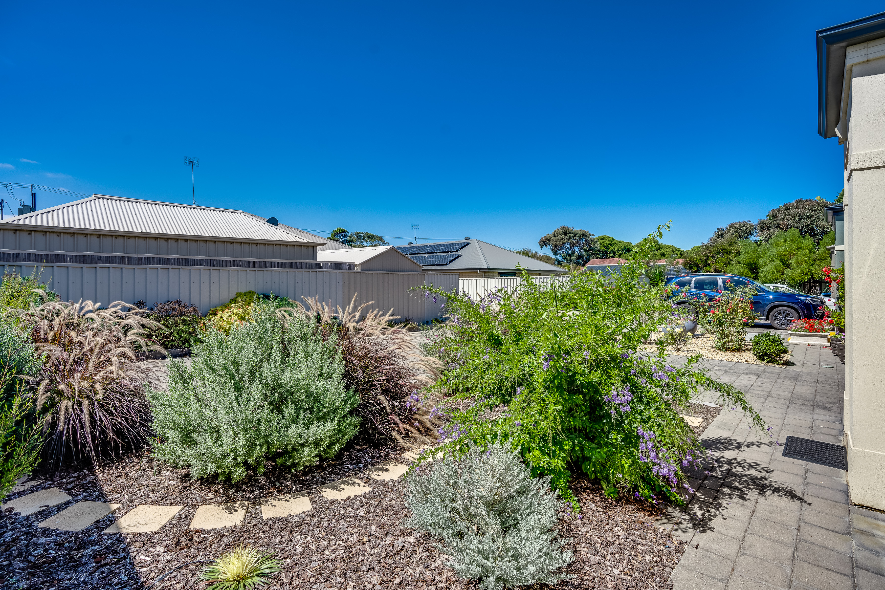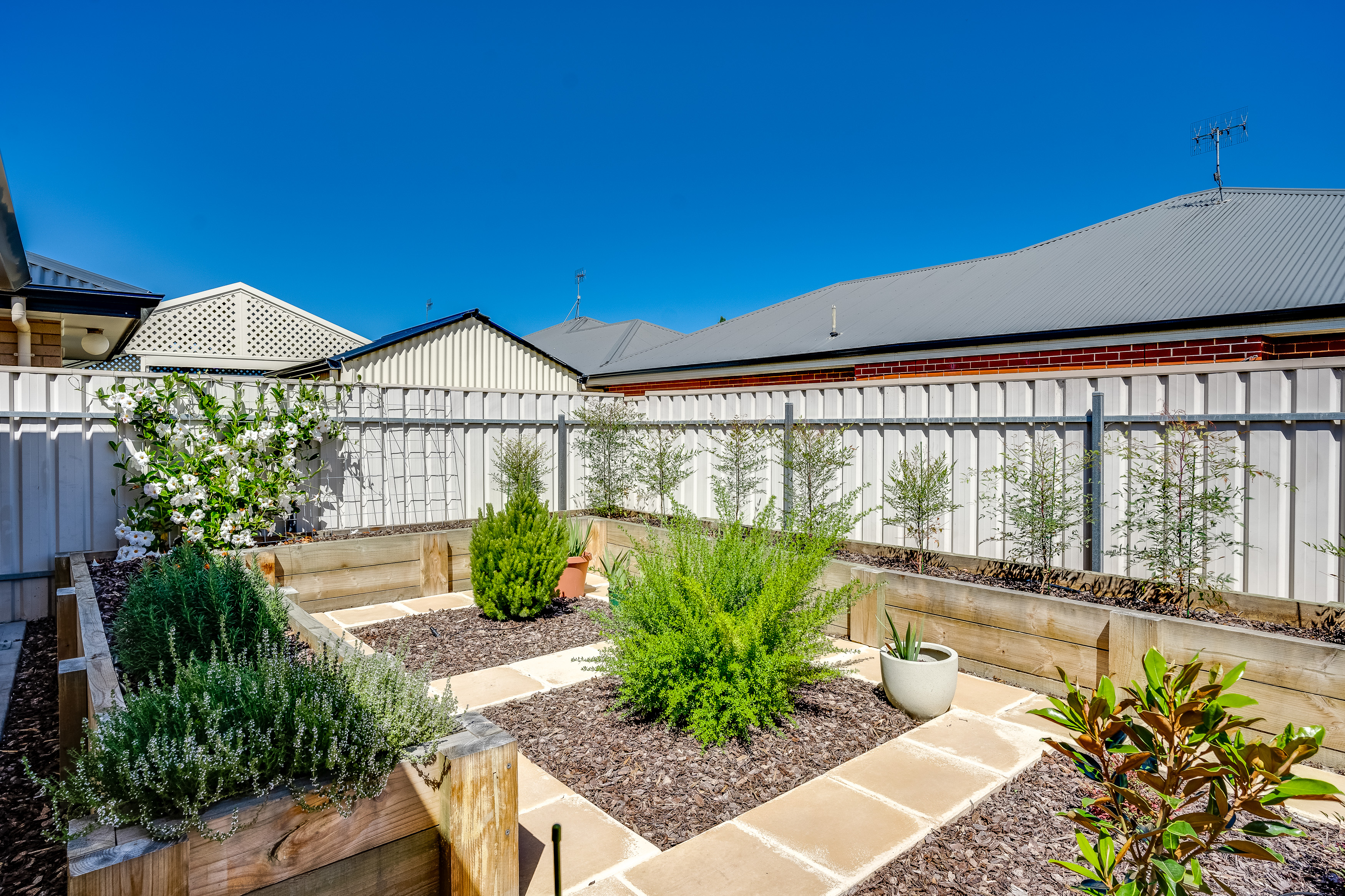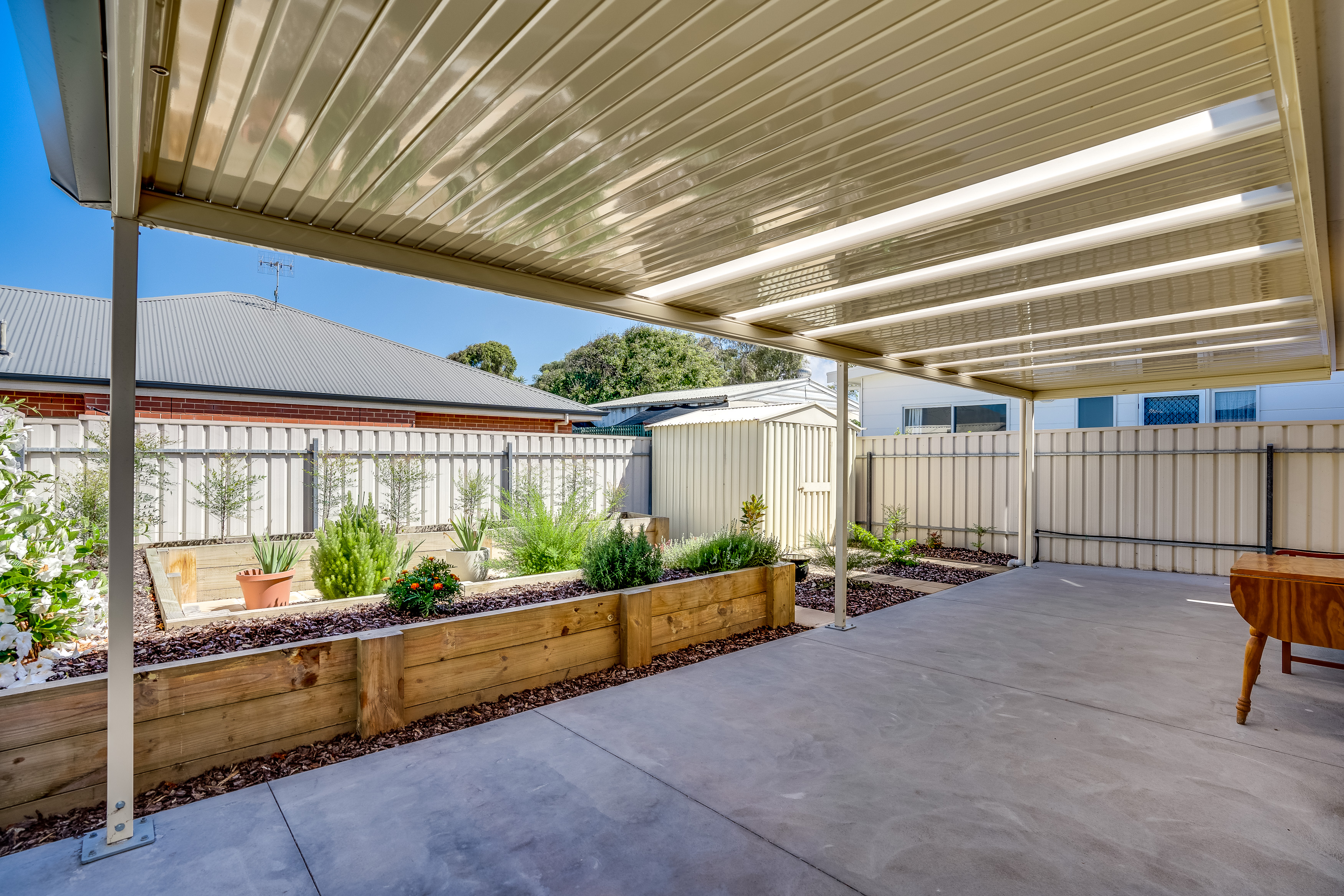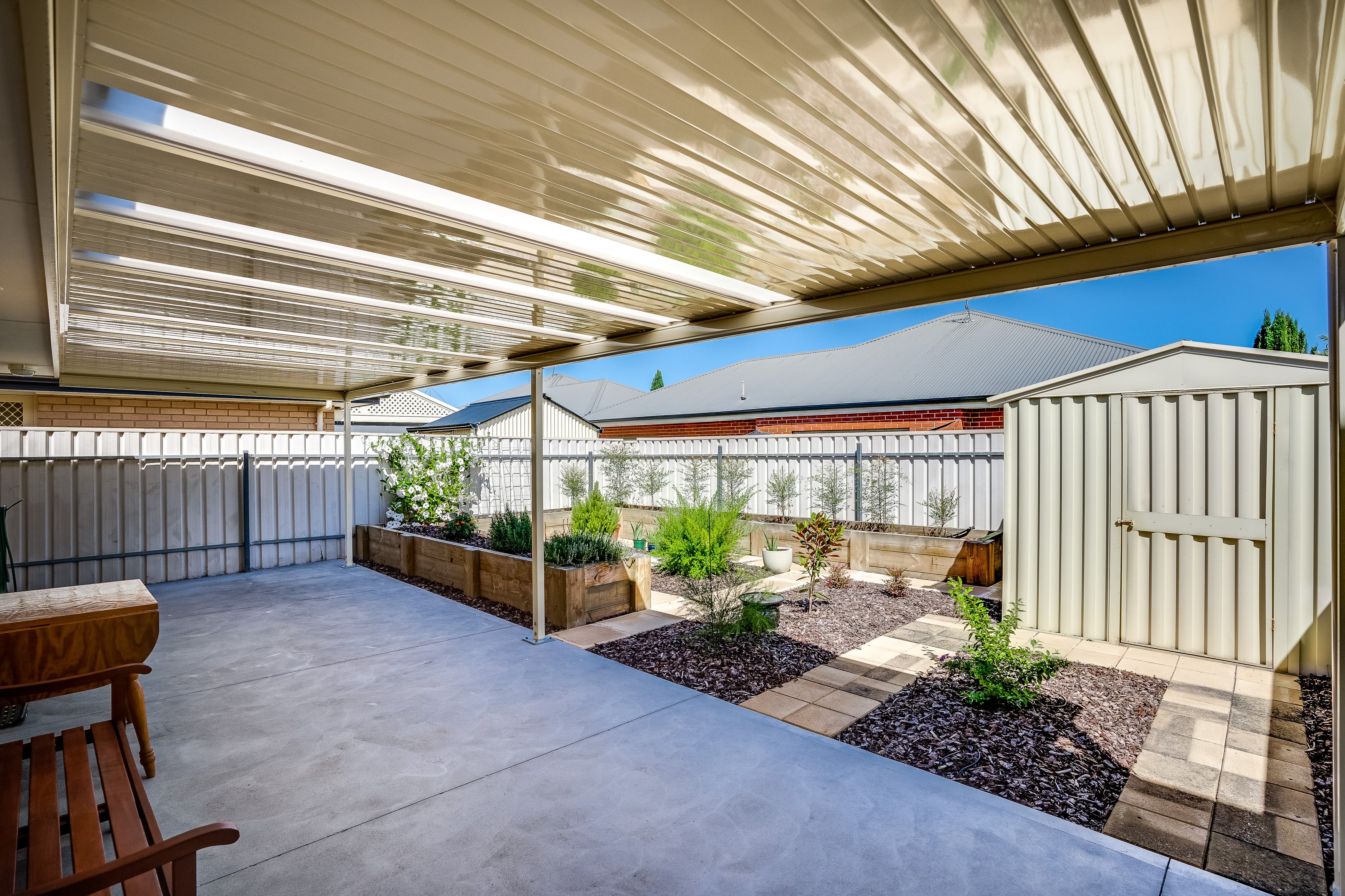 This generous space opens up through the sliding doors to the outside undercover pergola and back yard with shrubs and gardens, on drippers. A great spot to enjoy a bbq with friend and family. Private, secure and fully fenced plus a convenient tool shed to keep the gardening tools.