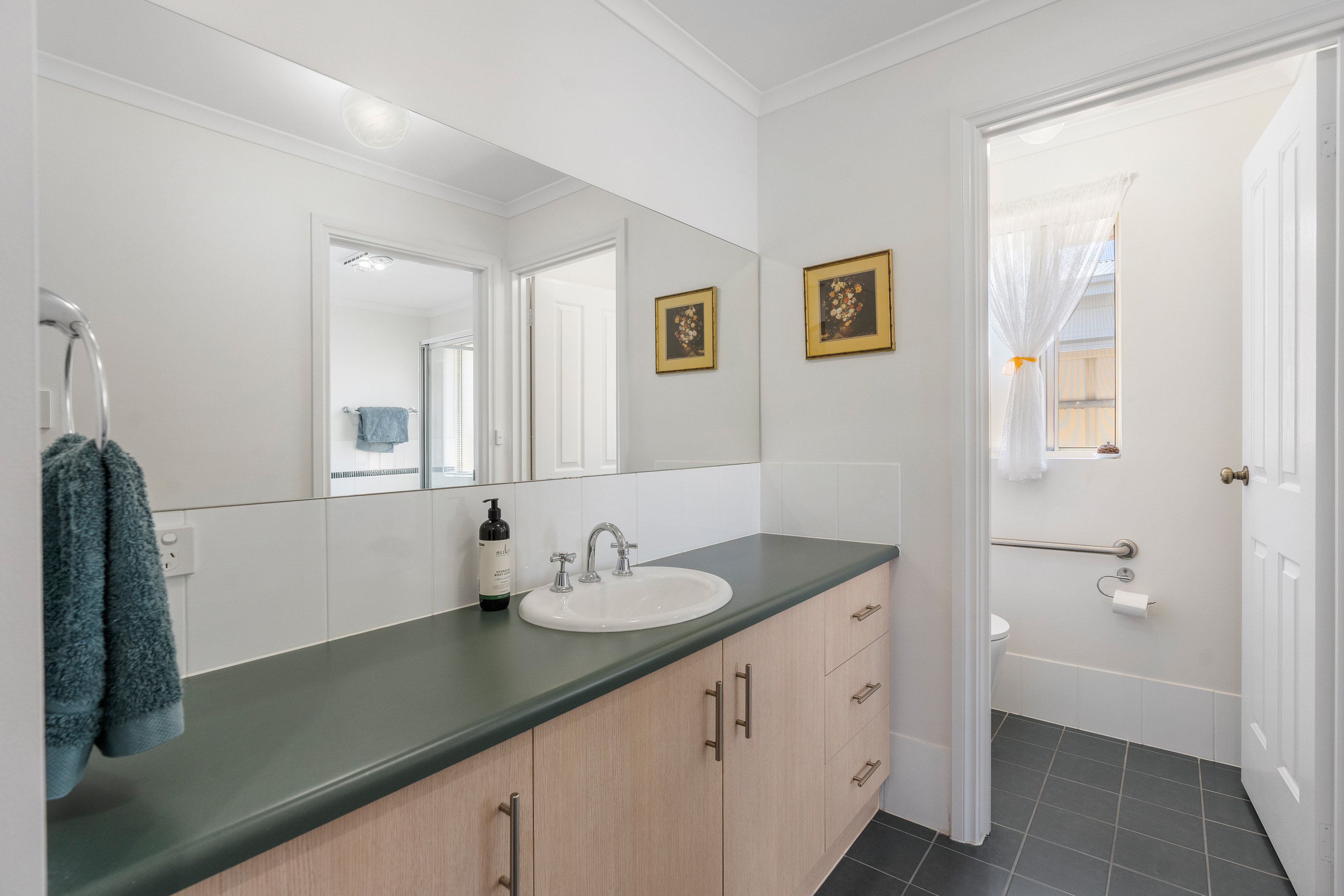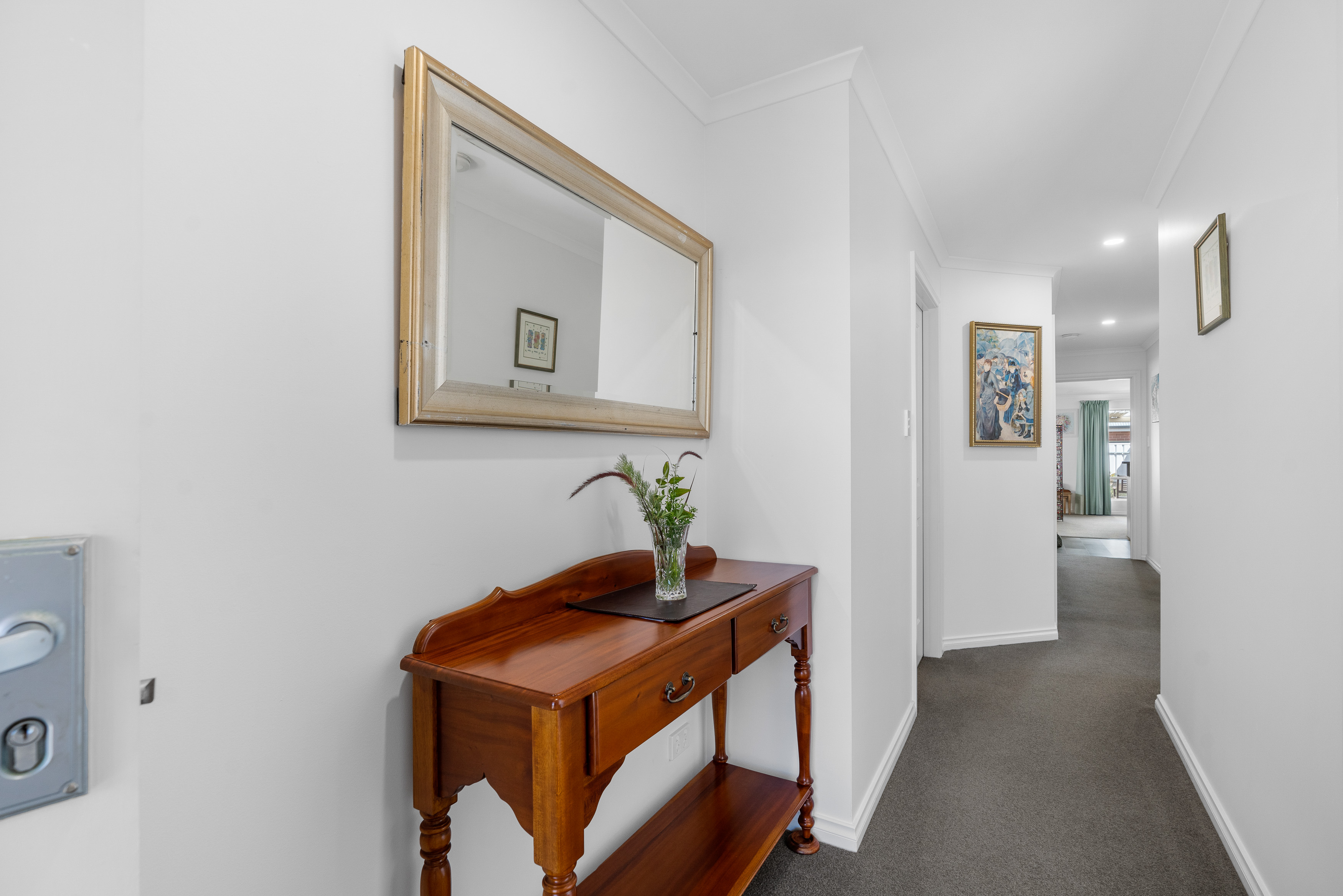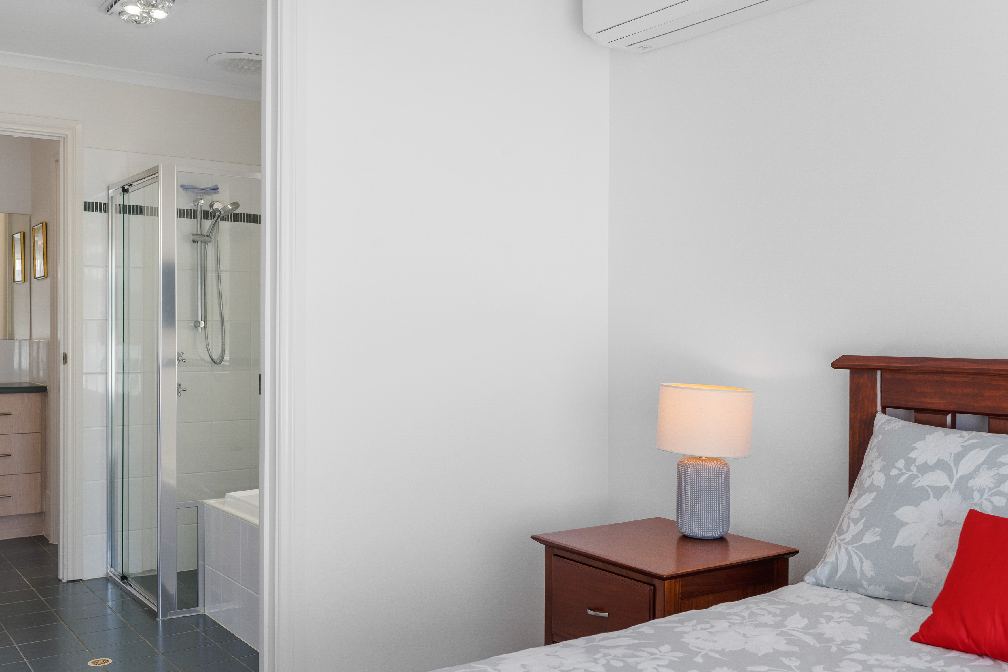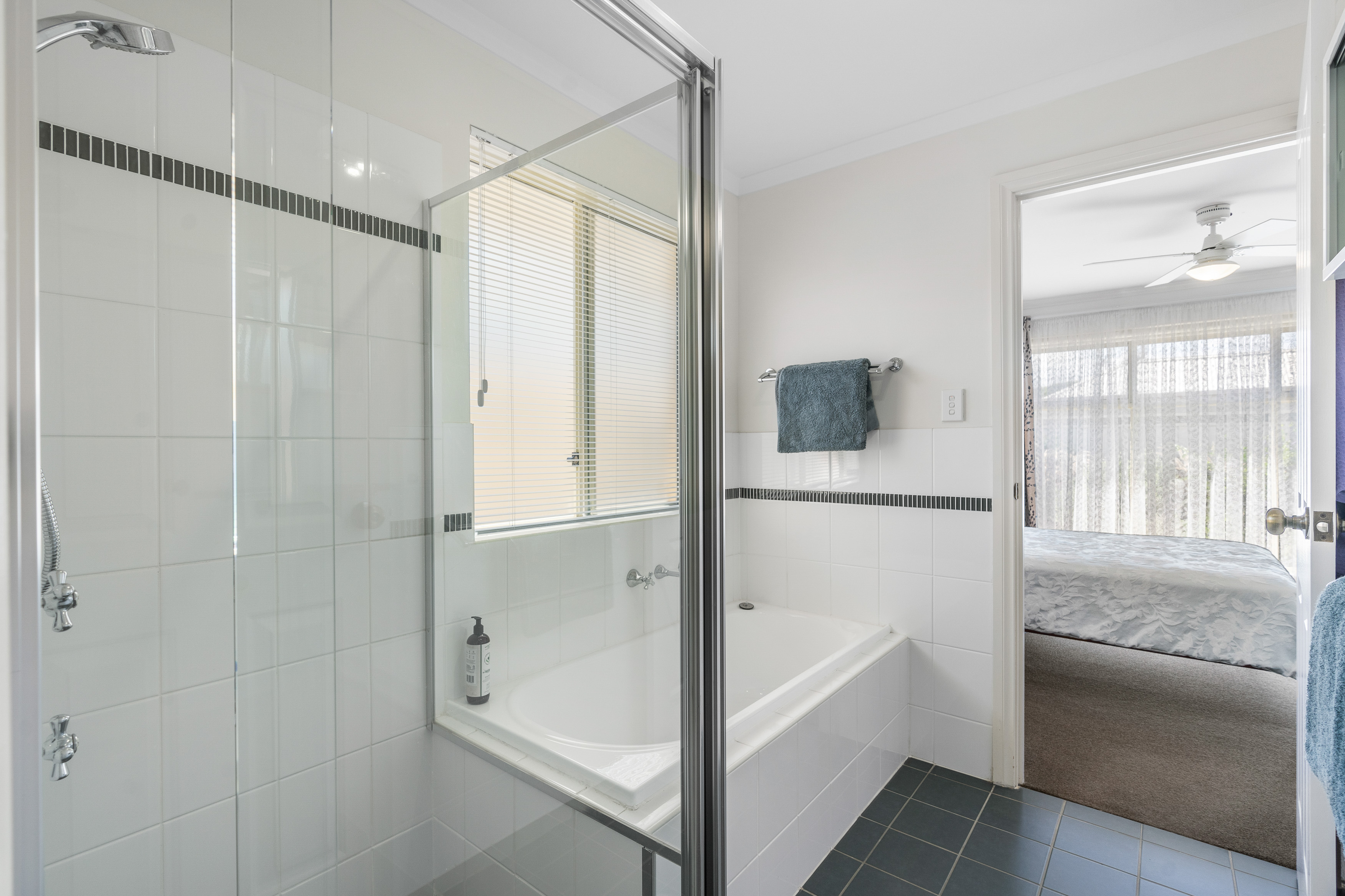 3 bedrooms. Master with WIR, ceiling fan and access to the 2 way bathroom with a separate toilet and vanity area. The other 2 bedrooms both have built in robes, carpet and ceiling fans.