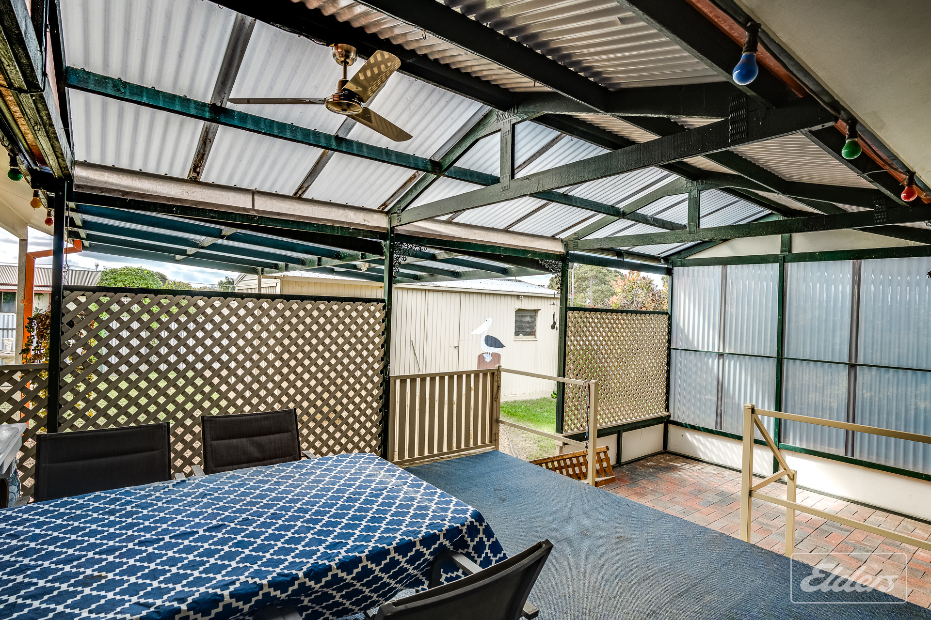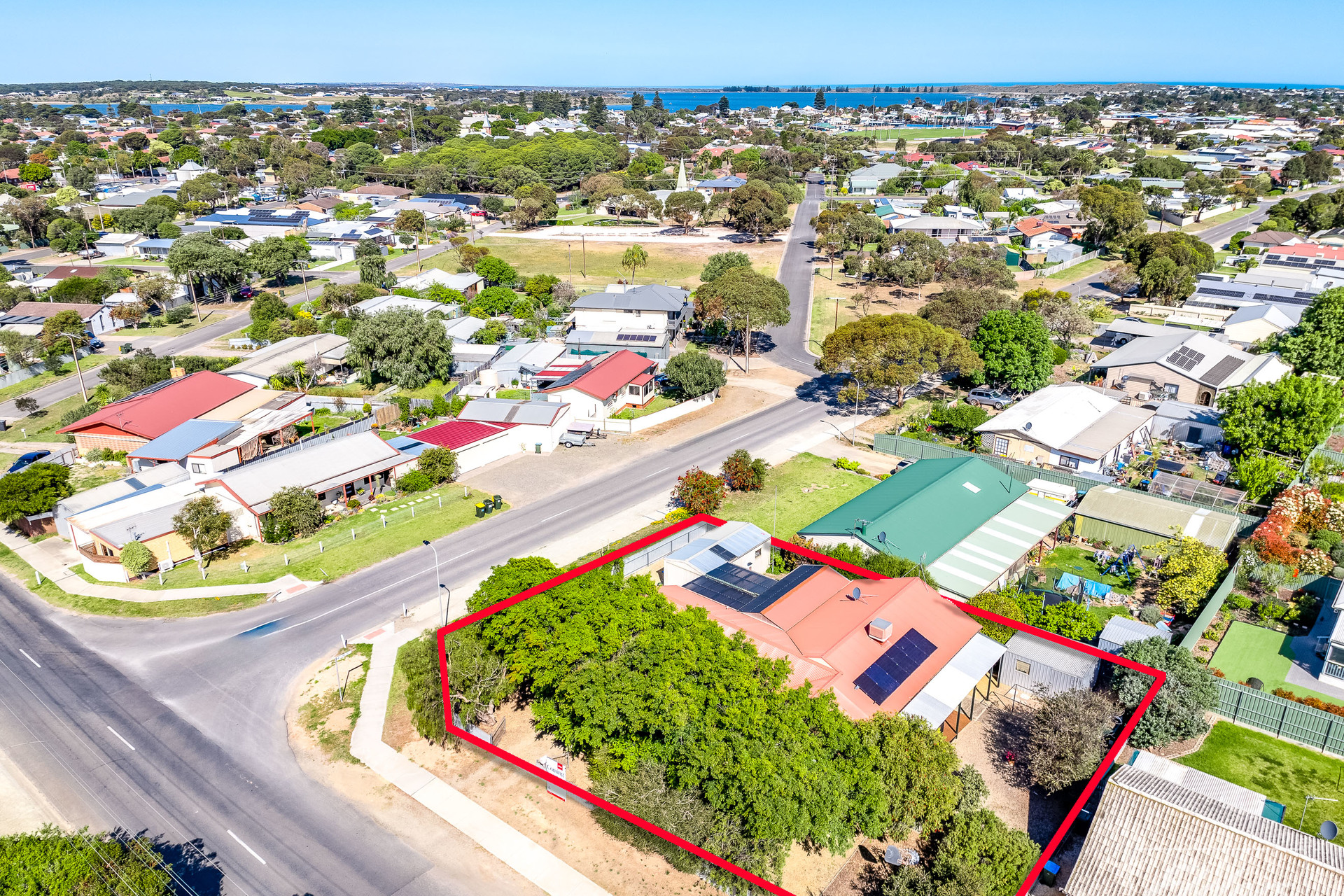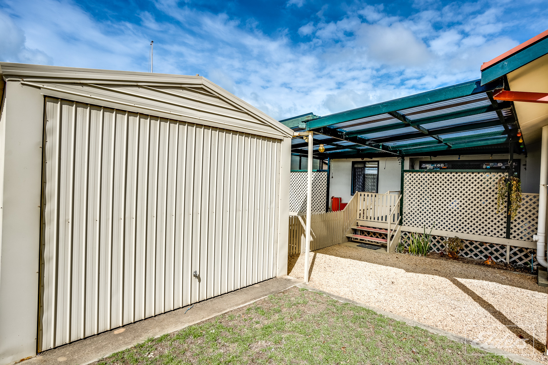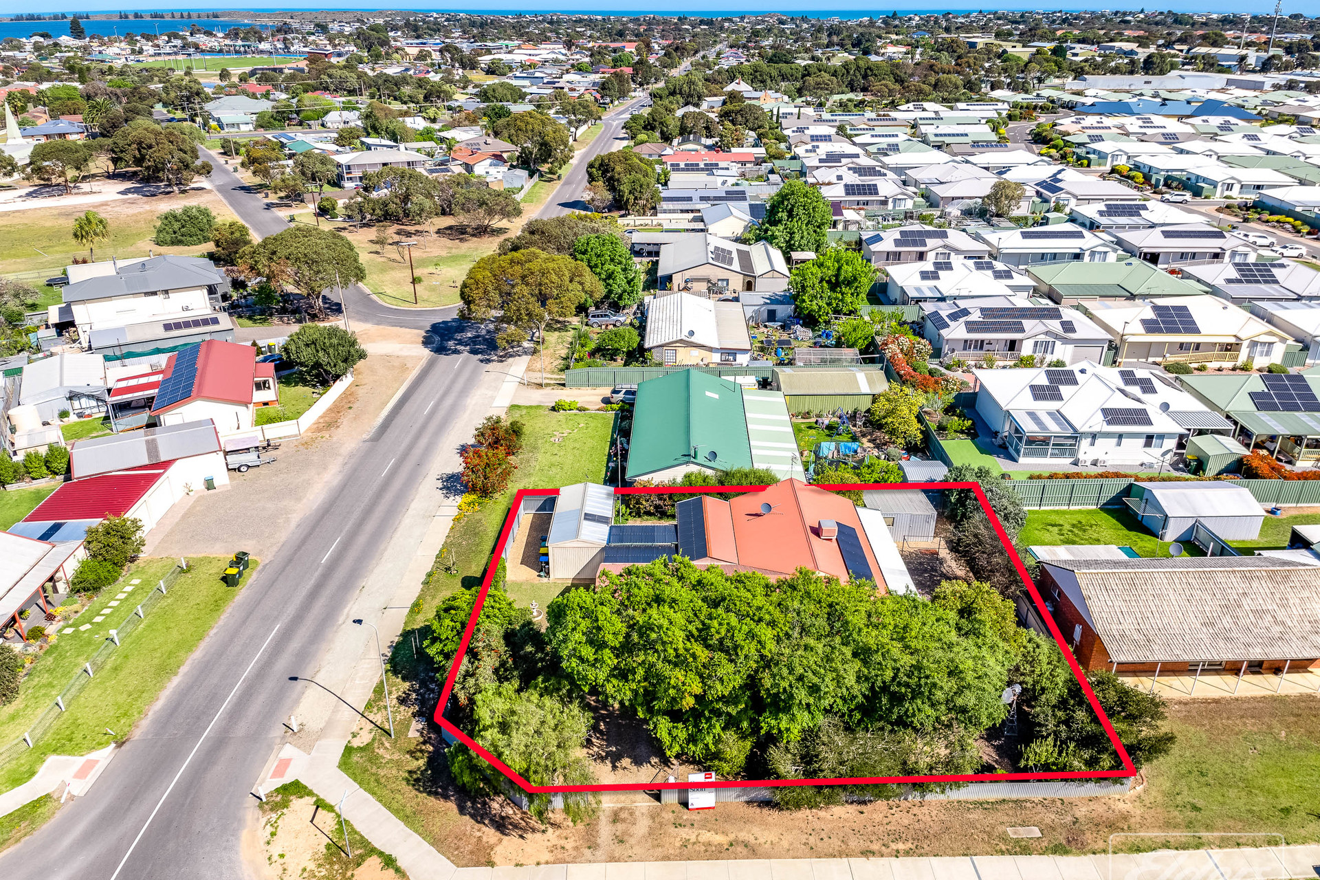 Large under cover entertaining area out of prevailing winds Carport plus single garage with concrete floor Extra shedding with rear garden shed Decent sized corner allotment with easy access. Approximately 760 square metres Solar system to reduce those power bills.
